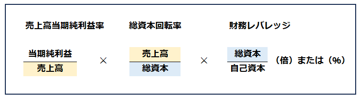 ROE = 売上高利益率 × 総資本回転率 × 財務レバレッジ