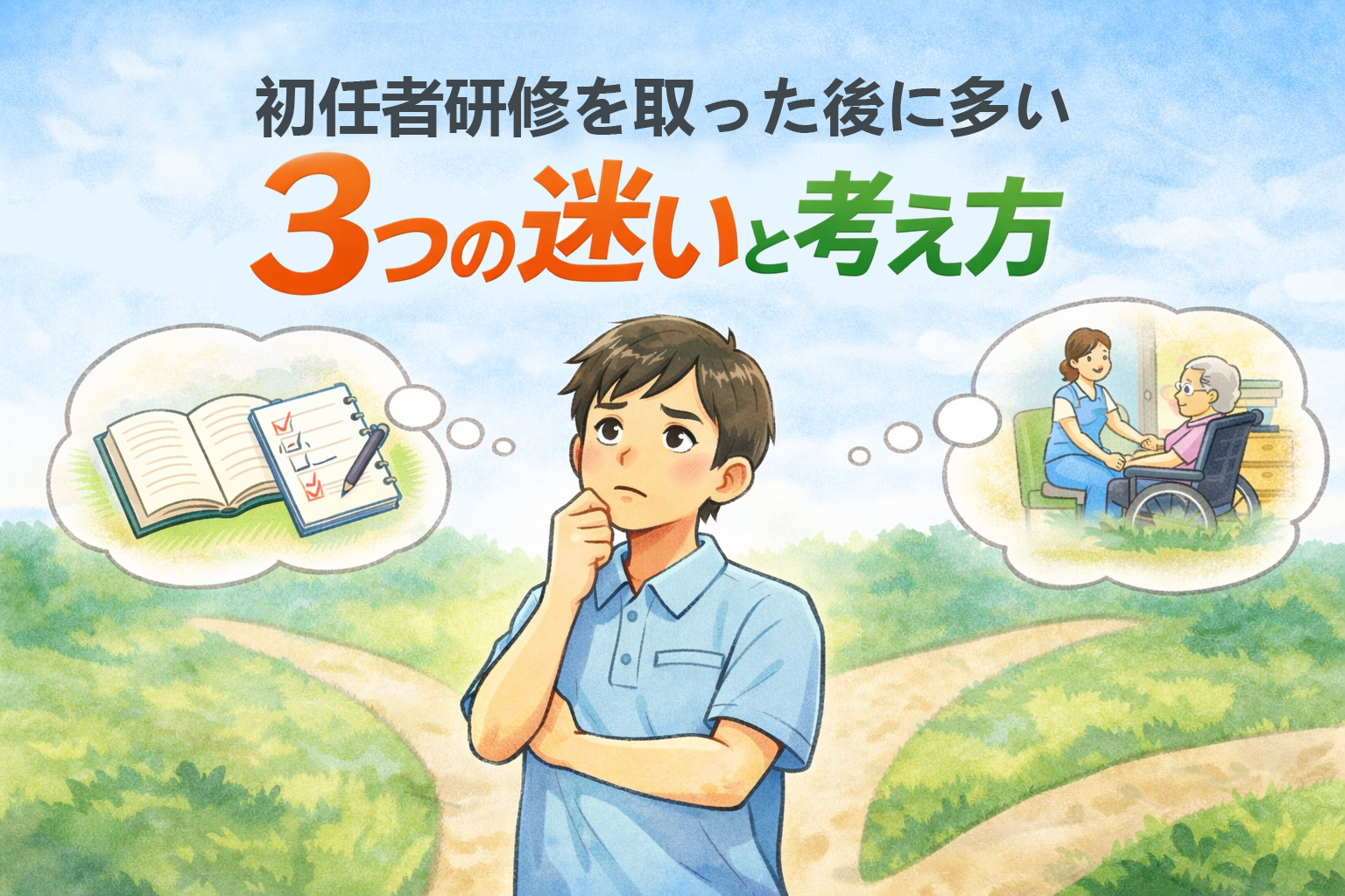 この記事では、初任者研修修了後に考えやすいテーマを3つの視点に分け、それぞれをどのように整理するとよいかをまとめてみます。結論を一つに決めるのではなく、判断の材料を整えることを目的としています。