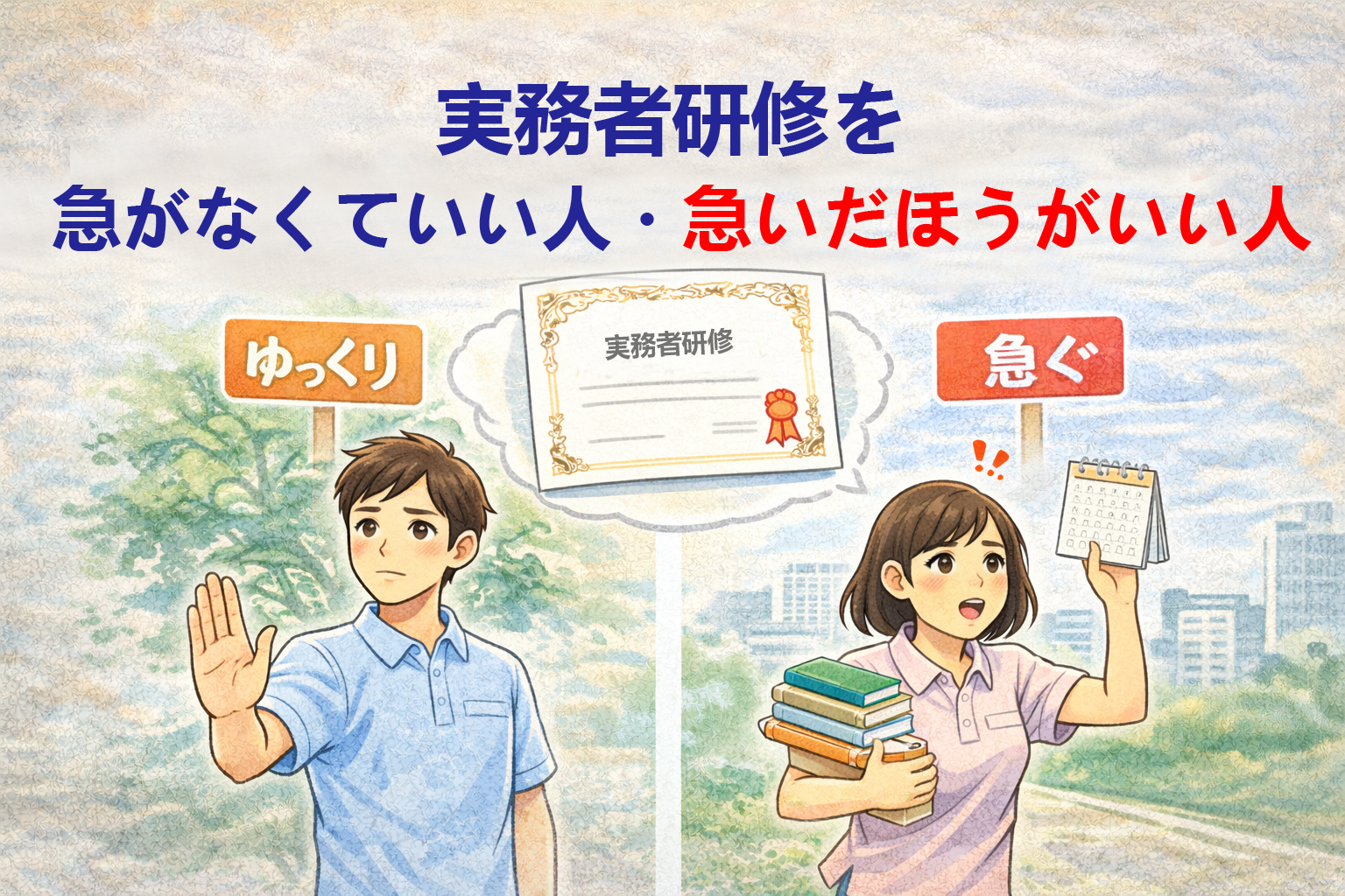 この記事では、実務者研修を「今すぐ急がなくてよい人」と「早めに検討したほうがよい人」を整理し、それぞれの判断軸を確認します。結論を一つに決めるのではなく、自分の状況に照らして考えるための材料としてまとめています。